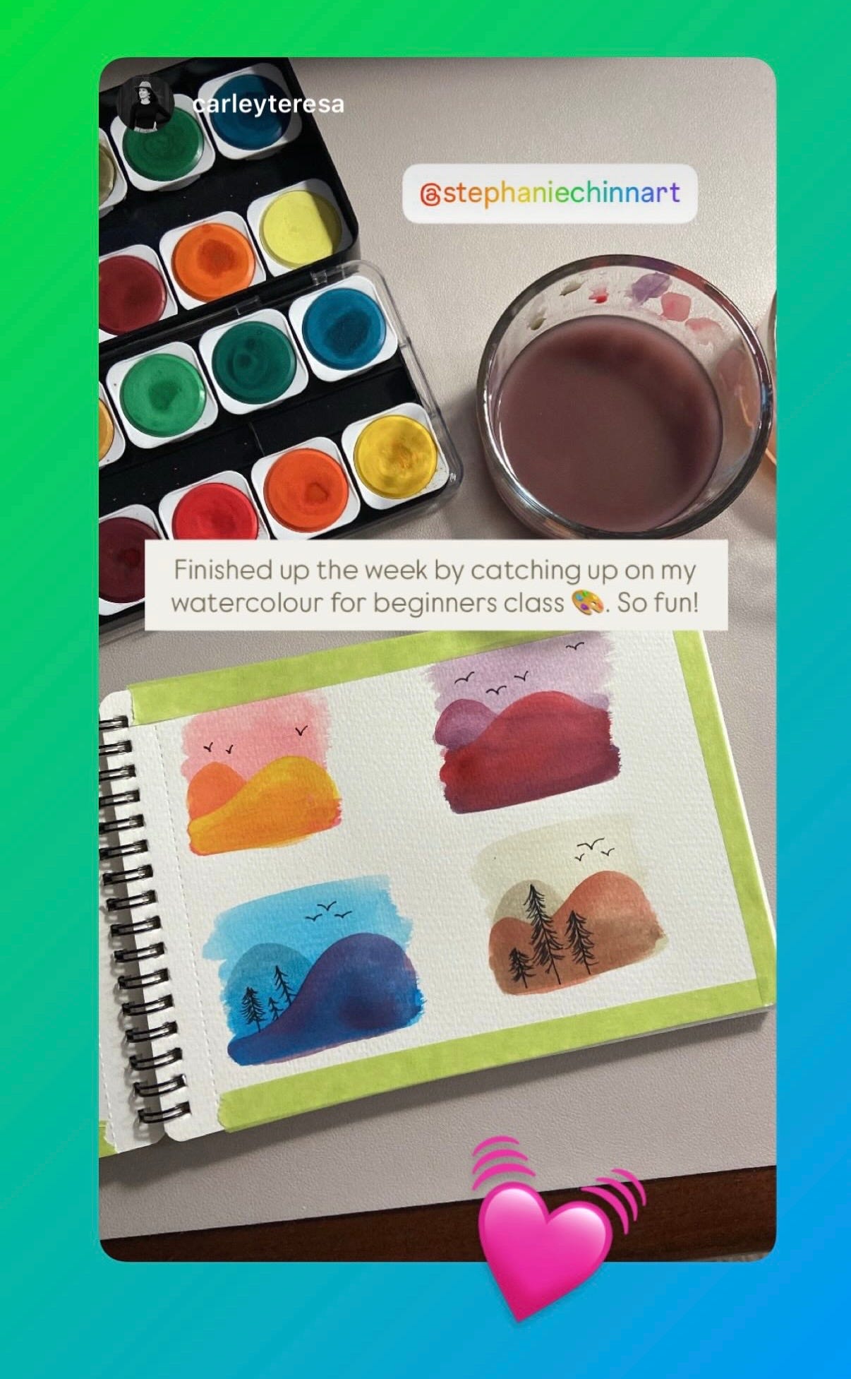 I absolutely love when you all share your art with me as you move through my courses! My Watercolor for The Brave Beginners Course came to a close last week, but it was such an honor to teach it. Can you believe Carley had never picked up a brush before this?!